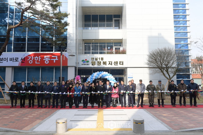 [부자동네타임즈 이의수 기자]동구 안심1동 행정복지센터가 지난 12개월의 공사를 마치고 12월 15일(금) 신축이전 개소식을 가졌다.