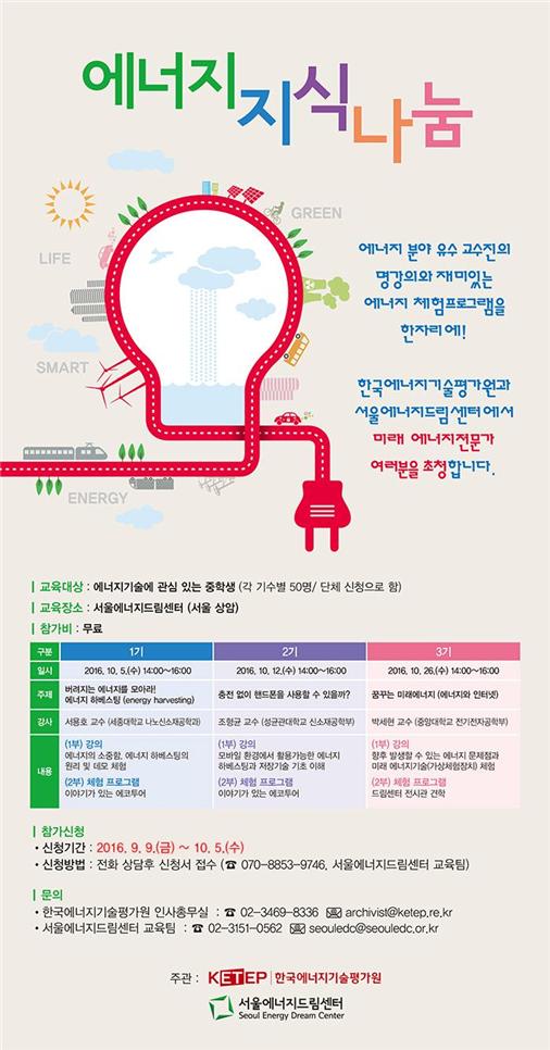 모든 프로그램은 사전 신청방식으로 운영되며, 참가문의는 서울에너지드림센터 홈페이지(seouledc.or.kr) 또는 운영사무실(3151-0563~4)로 하면 된다.