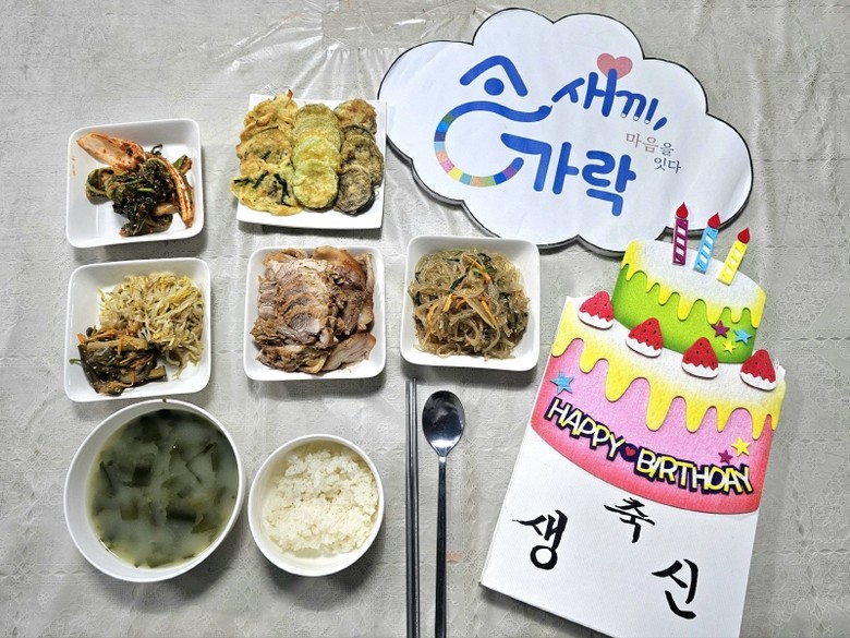 | ▲ 지난 23일 신천지자원봉사단 부천지부 봉사단원들이 준비한 '장애 어르신 합동 생일 잔치' 생일잔치상 [사진 제공 = 신천지자원봉사단 부천지부] |