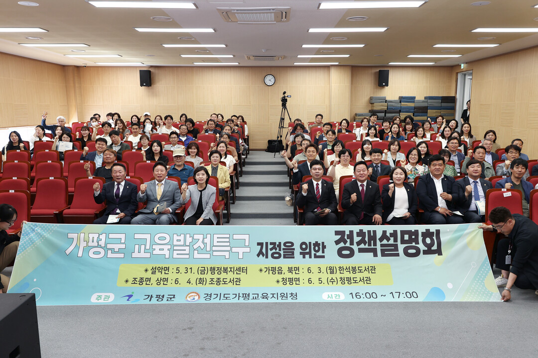 가평군과 가평교육지원청은 3일 조종면 조종도서관에서 ‘가평군 교육발전특구 지정을 위한 정책설명회’를 열고 현황 설명과 함께 군민들의 공감대 형성에 나섰다.