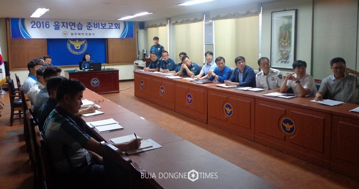 △광주북부경찰서 경비과는 16년 8월 17일 각 과장, 계장 등 30여 명이 참석한 가운데 '2016년 을지연습 준비보고회'를 개최하였다