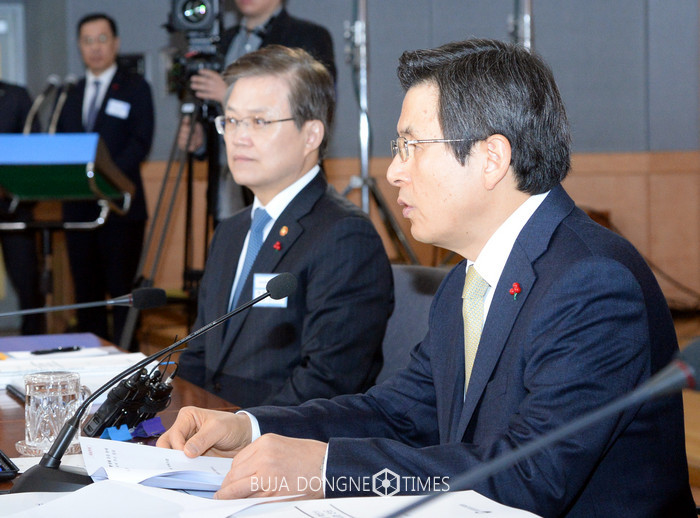 황교안 대통령 권한대행 국무총리가 6일 오전 서울 종로구 정부서울청사 별관 국제회의장에서 미래창조과학부·문화체육관광부·농림축산식품부·해양수산부·방송통신위원회 업무보고를 받기 전 모두발언을 하고 있다. 2017.01.06.