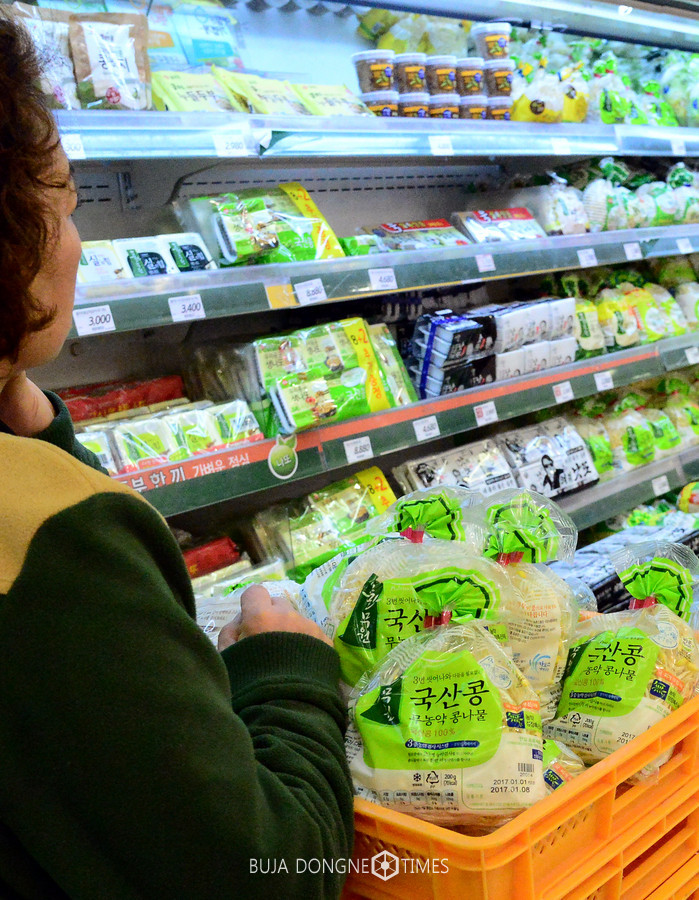 달걀과 식용유에 이어 콩나물 가격이 인상되고 조만간 두부값도 인상 될것이란 우려의 목소리가 나오는 가운데 6일 서울의 한 대형마트에서 직원이 걱정스러운 표정으로 콩나물과 두부를 바라보고 있다. 2017.01.06.