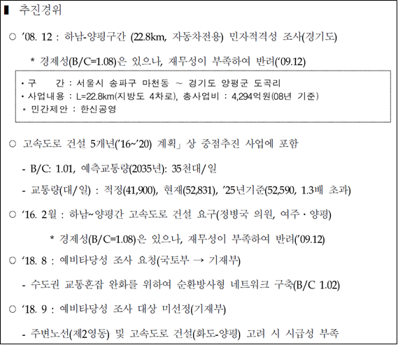 [그림1] 서울-양평 고속도로 사전타당성조사 추진경위