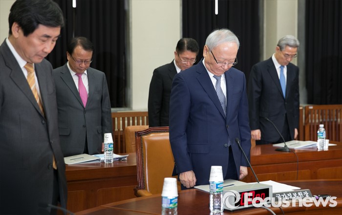 이날 회의 참석한 이병호 국정원장, 원유철 새누리당 원내대표, 이종걸 새정치민주연합 원내대표를 비롯한 여야 정보위 의원들은 묵념 시간을 갖고 비공개 회의를 진행했다.