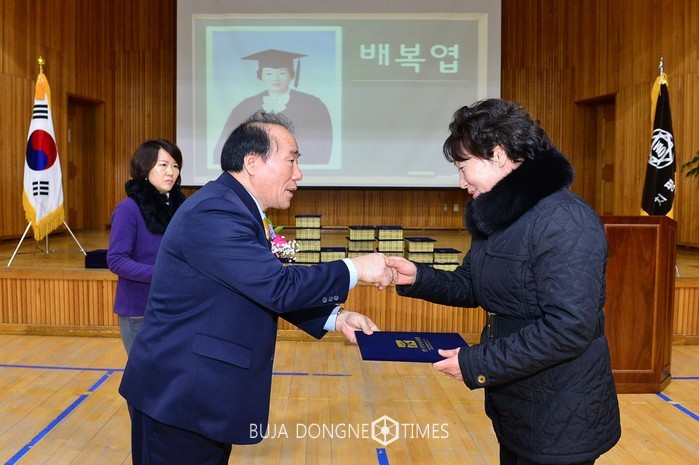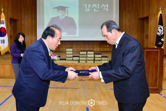 장휘국 광주시교육감은 3일(금) 오전 서구 치평중학교(교장 오근철) 강당에서 열린 성인문제교육(누림학교 과정) '2016학년도 중학교 학력인정서 수여식'에 참석, 졸업생 22명에게 학력인정서를 수여하고 존경의 마음을 담은 격려와 축하 인사를 했다.