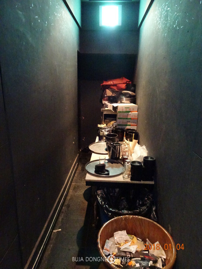 지하에 위치한‘B업소’는 화재 발생 시 손님들의 대피를 위해 어떠한 이유로도 비상구 앞에 구획된 실을 만들 수 없음에도 불구하고, 지하의 비상구에서 1층의 비상구로 올라가는 계단 앞에 객실을 만들어 놓고 버젓이 영업하다 적발되었다.