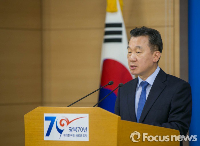 | △ 서울 세종대로 정부서울청사 3층 브리핑룸에서 정례 브리핑을 하고 있는 통일부 정준희 대변인. 정선식 기자 ss2chung@focus.kr |