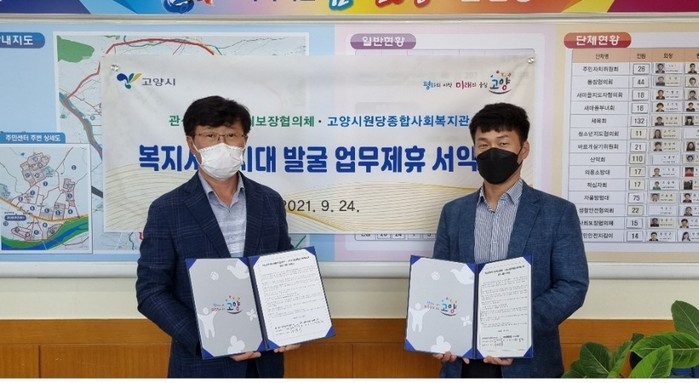 [부자동네타임즈 김인수기자] 고양시 덕양구 관산동 지역사회보장협의체(공공위원장 서병하)가 지난 24일 관산동 행정복지센터에서 고양시 원당종합사회복지관(관장 황의철)과 ‘관산동 복지사각지대 계층의 사회안전망 역할과 복지증진을 위한 상호협력 기반 구축’을 위한 업무 제휴 서약식을 가졌다.