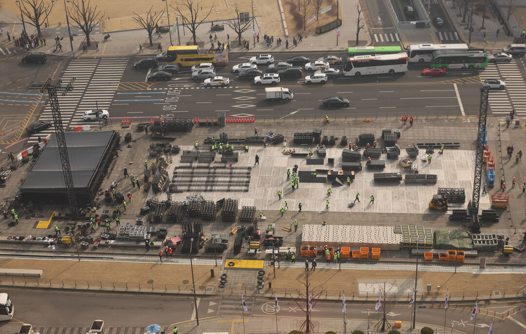 [부자동네타임즈 = 이언금 기자] 방탄소년단(BTS) 컴백 공연이 닷새 앞으로 다가온 16일 서울 광화문광장에서 무대 설치 작업이 한창이다. 2026.3.16
