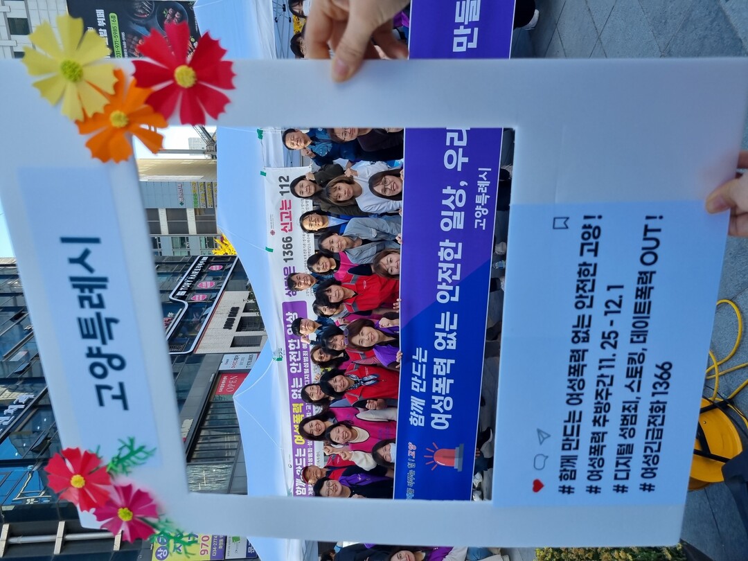 [부자동네타임즈 = 김인수 기자] 지난 2일 여성폭력 방지와 예방을 위해 화정역 로데오거리에서 민관 협력 캠페인을 추진했다. 이 캠페인은 여성폭력 추방주간(11.25.~12.1.)을 맞아 ‘함께 만드는 여성폭력 없는 안전한 일상, 우리 함께 만들어 가요!’라는 주제로 진행됐다.