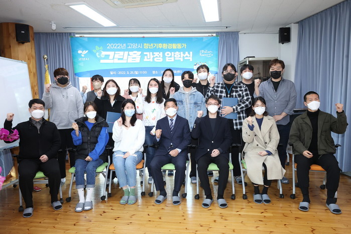[부자동네타임즈 김인수기자] 고양시는 심각한 기후위기 상황을 청년세대와 함께 대응하기 위해 지난 21일 기초과정 이수 후 최종 선발과정을 통과한 18명의 청년과 청년기후환경활동가(그린홉)과정 입학식을 개최했다.