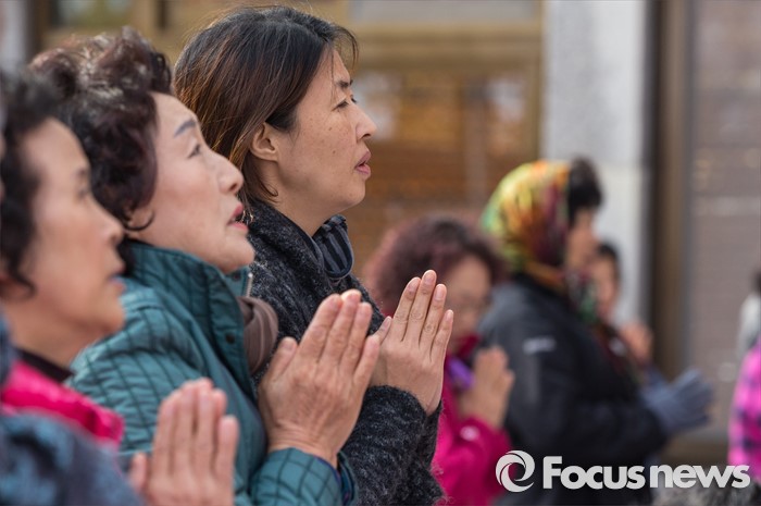 (서울=포커스뉴스) 수능을 엿새 앞둔 6일 오전 서울 강북구 삼양로 도선사 석불전을 찾은 수험생 학부모와 불자들이 기도하고 있다.