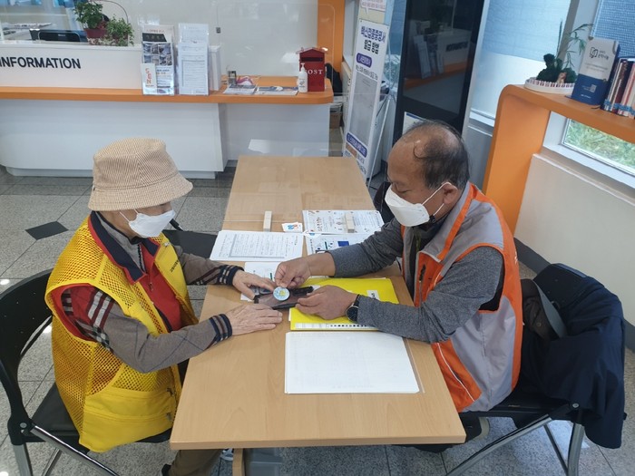 이용 어르신의 접종완료 확인을 위하여 쿠브(COOV)앱과 접종증명서가 활용되고 있으나, 어르신은 스마트폰 앱 설치 등 디지털기기 사용이 어려운 것이 현실이다. 이를 배려하기 위해 시가 접종완료 스티커를 제작했다.