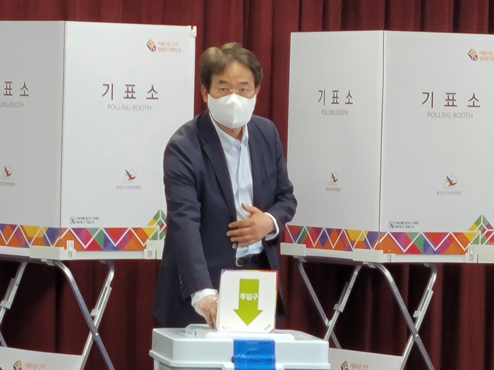 [부자동네타임즈 김인수기자] 이동환 국민의힘 고양시장 후보가 27일 오전 고양시 일산동구 식사동행정복지센터에 마련된 지방선거 사전투표소에서 투표를 마쳤다.