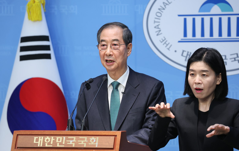 한 전 총리는 "지난주 워싱턴에서 열린 한미 2+2 고위급회담에서 상당히 의미 있는 성과가 있었고, 해결의 속도가 한층 빨라질 것으로 기대한다"며 "미국 정부는 물론 각계 전문가들과 활발히 소통하고 있고, 이번 통상 현안도 반드시 풀어내 보이겠다"고 밝혔다.한 전 총리는 "국민통합과 약자동행, 즉 국민동행을 약속한다"며 "남북이 나뉜 것도 통탄할 일인데 좌와 우로, 동과 서로, 이제는 남성과 여성으로, 중장년과 청년으로 계속해서 갈라져야 하겠느냐"고 반문했다. "새로운 정부는 '한덕수 정부'가 아니라 오직 앞으로 나아가고 싶은 모든 사람의 정부, 바로 '여러분의 정부'"라고 강조했다.한 전 총리는 국가 정책과 운영과 관련, "더불어민주당 대표님을 포함해 정치권과 우리 국민이 제안하는 좋은 정책이 있다면 아무런 고정관념 없이 받아들이겠다"며 "대선 과정에서 경쟁하시는 분들을 한 분 한 분 삼고초려해 거국통합내각에 모시겠다"고 약속했다."차관급 이하의 인사는 철저하게, 그분과 함께 일할 부총리와 장관이 책임지고 발탁하도록 하겠다"고 덧붙였다.한 전 총리는 "저의 이념은 단 하나, 여기서 우리나라의 기적이 끝나선 안 된다는 것"이라며 "청년들이 저를 디딤돌로 삼고, 세계로 미래로 나아가길 소망하며, 오직 국리민복을 위해 일하고 또 일하겠다"고 말했다.