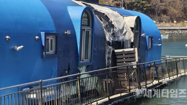 기자는 해상펜션 군락으로 향했다. 바다 위에 띄워진 다섯 채의 펜션 중 하나는 화재로 반파돼 흉물로 남아 있었다. 멀리서 봐도 녹아내린 외벽이 선명했다. 주민 A씨는 입을 굳게 다문 채 말했다.