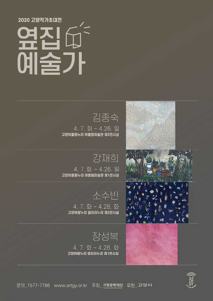 강재희와 김종숙의 개인전은 4월 7일부터 4월 26일까지 고양어울림누리 어울림미술관에서, 장성복과 소수빈의 개인전은 4월 7일부터 4월 28일까지 고양아람누리 갤러리누리에서 각각 관람할 수 있다.