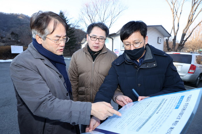 [사진설멸] 서울시립묘지 현장에서 도로확장 관련 보고를 받고 있는 이동환 고양특례시장.