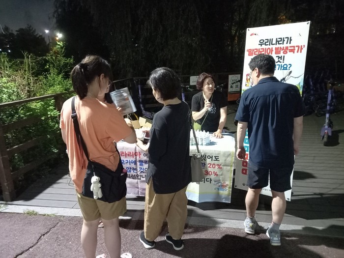 덕양구보건소는 말라리아를 예방하기 위해 야간에 이용자가 많은 공원, 소하천 산책로 입구, 실외 운동시설 주변에서 해충 기피제와 예방 홍보문을 배부하고 있다.