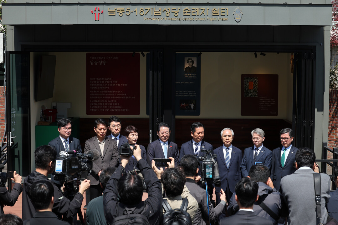 남동성당에 모인 정청래와 통합시장 후보들