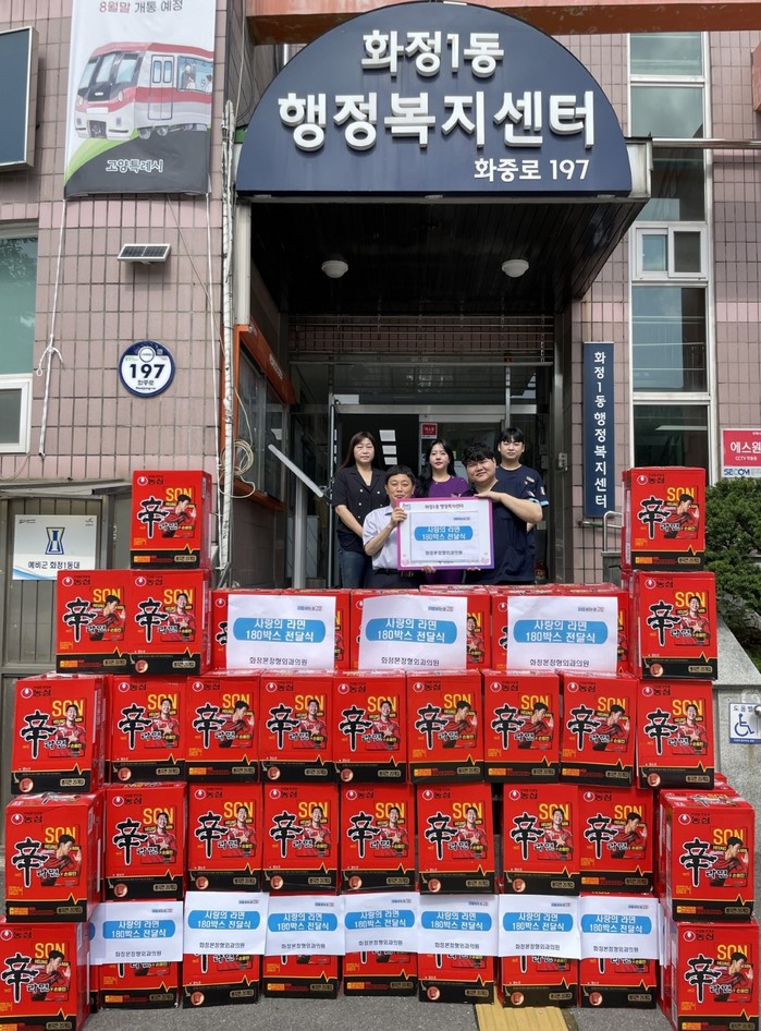[부자동네타임즈 김인수기자] 고양특례시 화정1동 행정복지센터는 지난 19일 ‘화정본정형외과의원’으로부터 관내 어려운 이웃들의 건강한 여름나기를 위한 라면 180박스(3600개)를 후원받았다고 밝혔다.