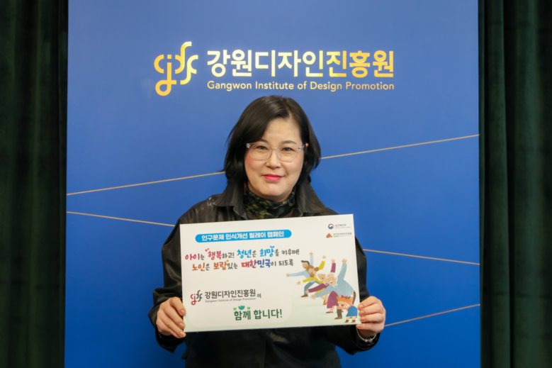 최인숙 강원디자인진흥원장(이하 ‘원장’)이 저출산·고령화 등 인구 구조 변화에 대한 사회적 인식을 개선하기 위해 3월 25일 ‘인구문제 인식 개선 릴레이 캠페인’에 동참했다.