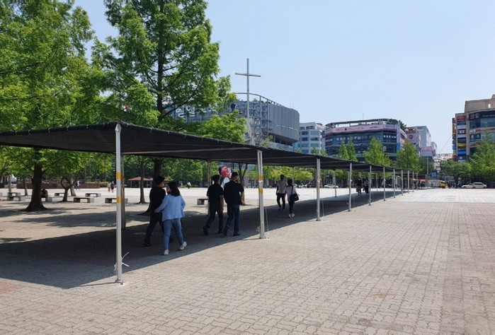 지난 6월 화정역 광장과 일산문화공원에는 안심 그늘막을 설치했다. 유동인구가 많은 곳에 100m 길이의 그늘막이 생겨 시민들이 보다 쾌적하고 편리하게 이동할 수 있게 됐다.