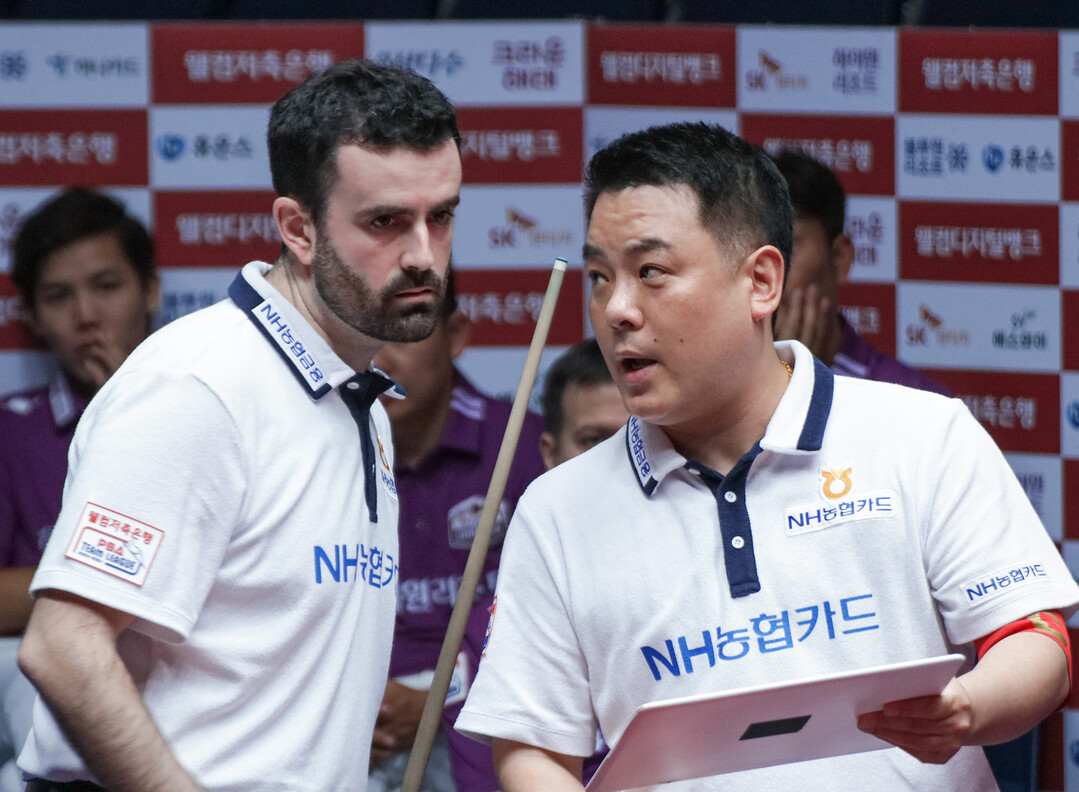 지난 16일 경기도 고양시 ‘고양 킨텍스 PBA 스타디움’에서 열린 ‘웰컴저축은행 PBA 팀리그 2023-2024’ 3라운드 4일차 경기서 NH농협카드는 휴온스를 상대로 세트스코어 4:1로 승리를 거두고 단독 1위를 굳혔다.