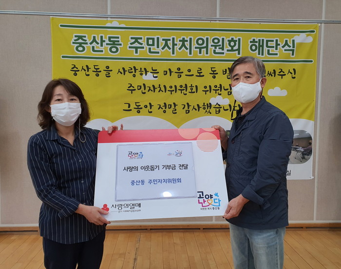김옥님 중산동장은 “중산동을 위해 늘 힘써주신 중산동 주민자치위원회에 감사드리며, 중산동 주민자치위원회에서 주신 기부금은 관내 어려운 이웃을 돕는 데 사용하겠다”고 말했다.