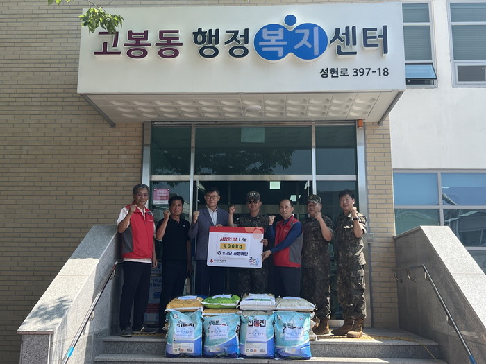 [부자동네타임즈 김인수기자] 고양특례시 고봉동 행정복지센터는 지난 6월 16일 9사단 포병여단(백호부대)으로부터 지역 내 취약계층을 위한 사랑의 쌀 400kg을 후원받아 전달식을 진행했다.