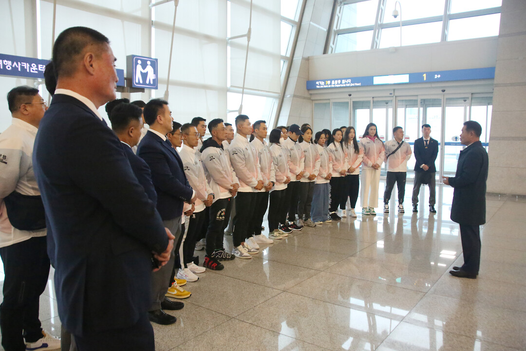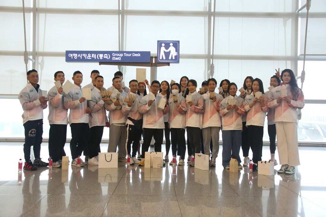 [사진설명] 선수단이 스페인으로 출국 전 단체사진을 찍고 있다.