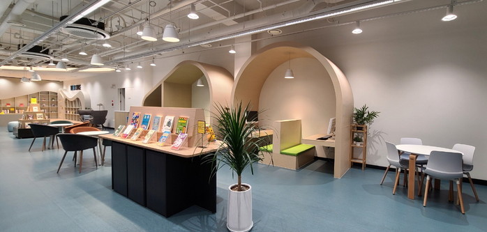 덕이도서관은 약 268.8㎡의 기존 식당, 폐점된 매점 등이 있던 지하1층 공간에 쉼터, 배움터, 모임 및 독서 공간 등 청소년들이 다양한 여가활동이 가능하도록 리모델링을 완료했다.