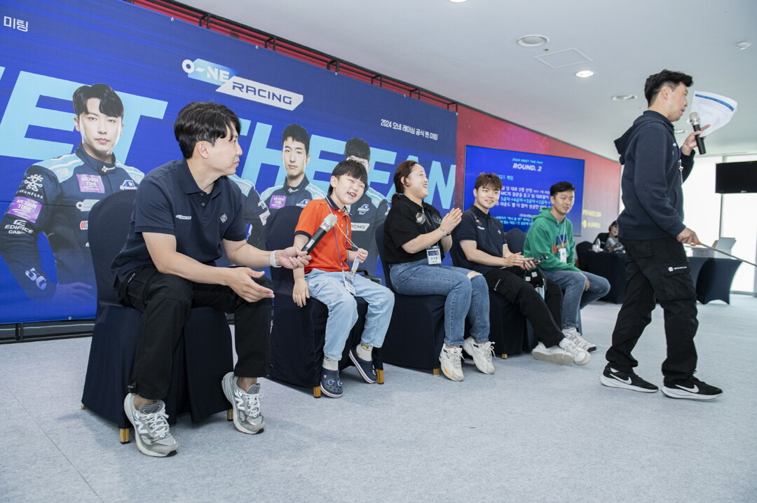 오네 레이싱은 공식 팬클럽 ‘SPEED ONE’ 멤버를 대상으로 팬미팅 참가 신청을 받아 약 20여 명을 선정해 2024 오네 슈퍼레이스 챔피언십 3라운드 예선이 열리는 영암 코리아 인터내셔널 서킷에 초대했다. 올 시즌 팀을 리브랜딩 하며 구성원이 대거 변경된 오네 레이싱은 모든 인원이 참석해 팬클럽 회원들과 인사하는 시간으로 팬미팅의 포문을 열었다. 그 후 오한솔, 김동은, 이정우, 송영광 드라이버에게 궁금한 것들을 물어보는 시간을 가진 후 선수들을 포함한 참가자들을 두 팀으로 나눠 레크리에이션을 하며 분위기를 끌어올렸다. 레크리에이션이 끝난 후에는 오네 레이싱 선수들과 함께 사인회와 포토 타임을 갖고 팬미팅을 마쳤다.