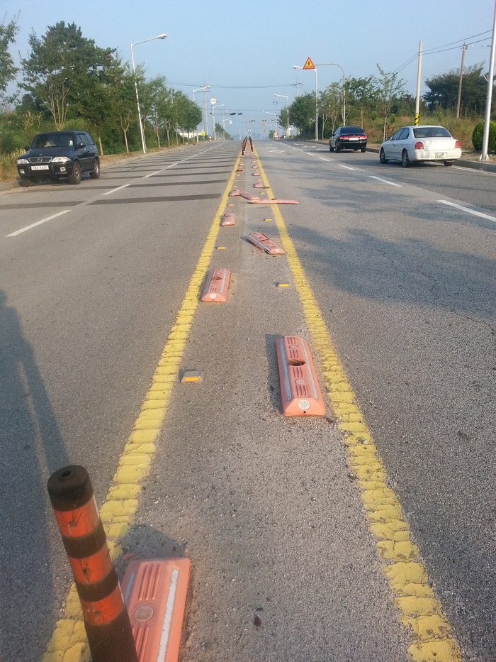 익산시 모현동을 지나 오산면 용곤마을로 통하는 왕복 2차선에 도로파손의 주범인 천공방식으로 약 1㎞의 시선유도봉이 설치돼 있다. 하지만 이러한 시선유도봉이 오래전부터 파손돼 망가져 있어 교통사고의 위험성과 도로미관을 헤치고 있다.