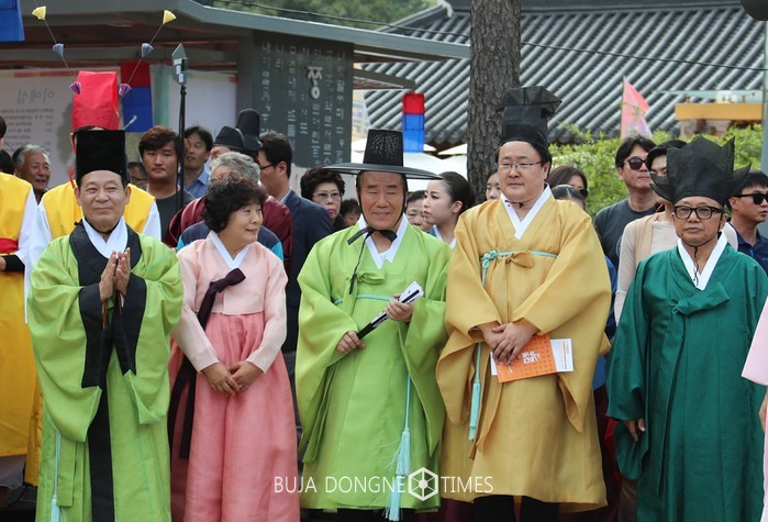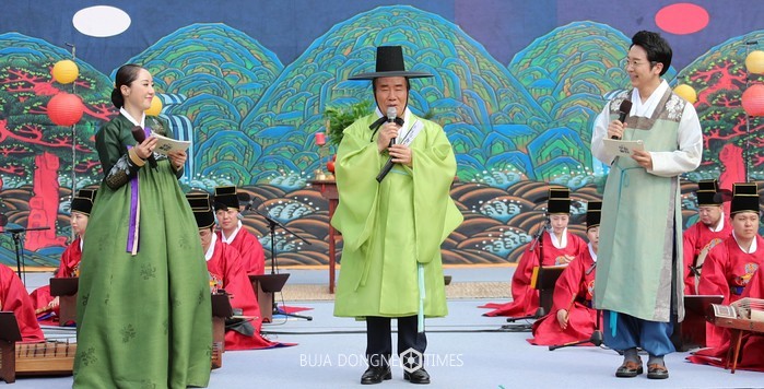 | △장 교육감은 광주 시민들과 윤장현 광주광역시장, 송기석 국회의원, 조세철 시의원 등 내·외빈께 개막식 인사말을 전환 후 궁중음악, 궁중혼례 등 이날 야외마당에서 펼쳐진 다양한 공연과 함께 했다 |