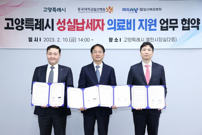 [부자동네타임즈 김인수기자] 고양특례시(시장 이동환)가 올해부터 성실납세자에게 의료비 우대 혜택을 제공한다. 시는 2월 10일 고양시청에서 동국대학교 일산불교병원, 일산복음병원 관계자와 함께 업무협약을 체결했다.