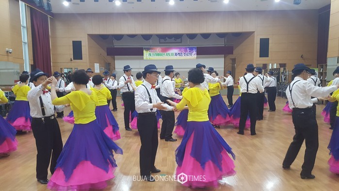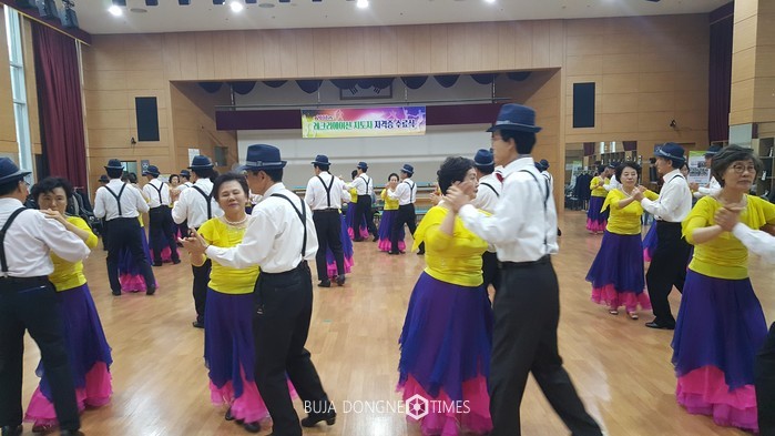 | △광주복지재단산하 빛고을노인건강타운 부부댄스반 부부 8쌍이 레크레리에이션 3급 지도자 자격증을 취득해 눈길을 끌고 있다 |