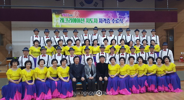 광주복지재단(대표이사 장현) 산하 빛고을노인건강타운 부부댄스반 부부 8쌍이 레크레리에이션 3급 지도자 자격증을 취득해 눈길을 끌고 있다.