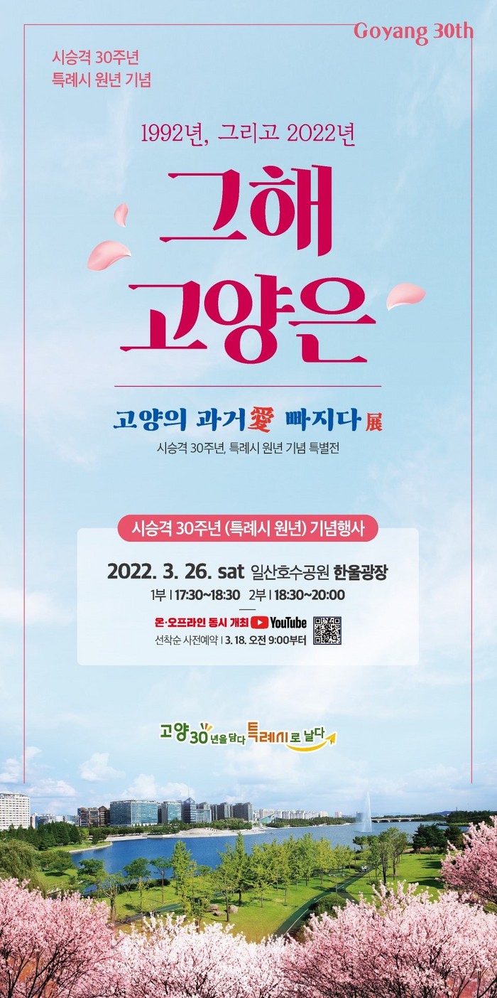 시 관계자는 “1991년 일산신도시 건설, 1992년 고양군에서 고양시로 승격, 2014년 인구 100만명 돌파, 2022년 고양특례시 출범 등 고양시가 지금까지 이뤄온 눈부신 발전은 시민과 함께 이뤄낸 자랑스러운 역사”라며 “전시회가 코로나19로 지친 시민들에게 과거를 함께 추억하고 고양의 변화를 공유하여 시승격 30주년과 고양특례시로의 새로운 출범을 축하하는 자리가 되었으면 한다”고 밝혔다.
