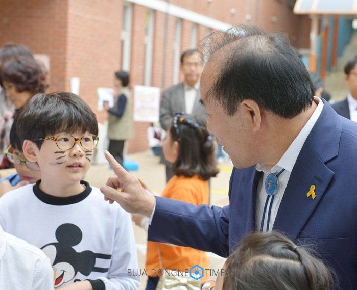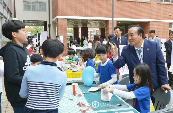 | △장휘국교육감은 광주동신초등학교 중정원과 운동장에서 열린 '광주동산한마음 마을축제'에 참여해 학생, 학부모, 지역주민들과 만난 후 학교 안전 시설과 교육 현장을 둘러봤다 |