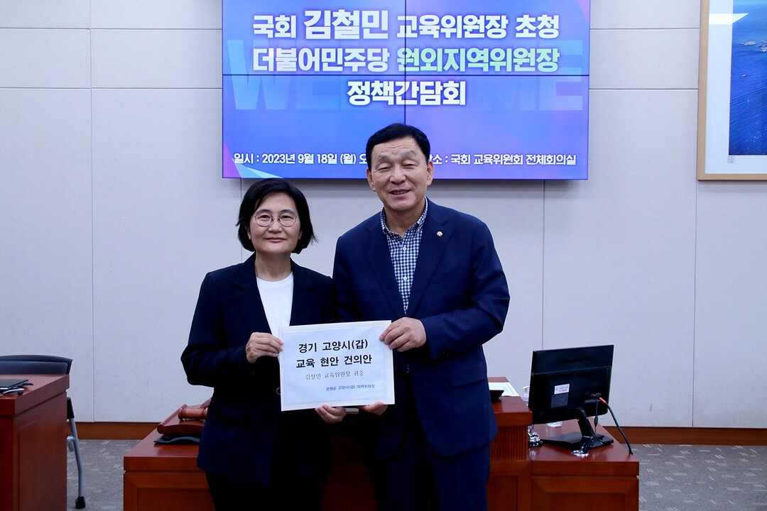 [부자동네타임즈 = 김인수 기자] 문명순위원장(더불어민주당, 고양갑)은 9월 18일(월) 국회 김철민 교육위원장실에서 고양시 교육 현장의 현안을 논의하는 시간을 가졌다.