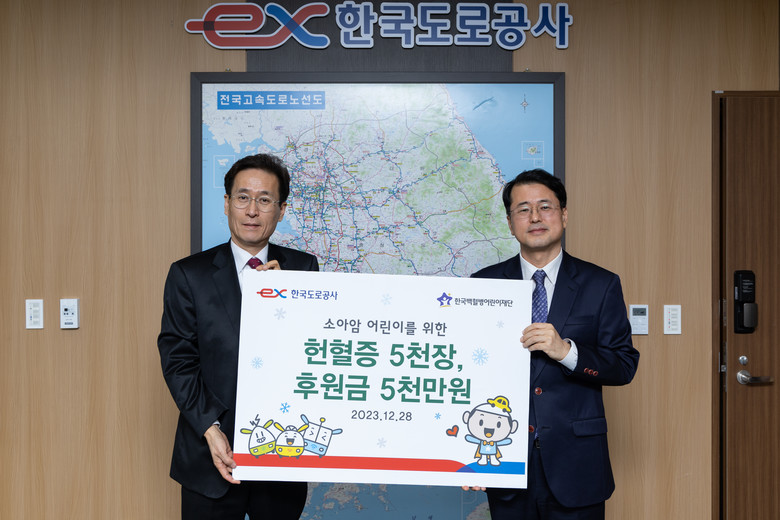 한국도로공사(사장 함진규)는 지난 28일(목) 한국백혈병어린이 재단에 소아암 어린이 환자들의 치료 지원을 위해 헌혈증 5천장과 치료비 5천만원을 전달했다고 밝혔다.