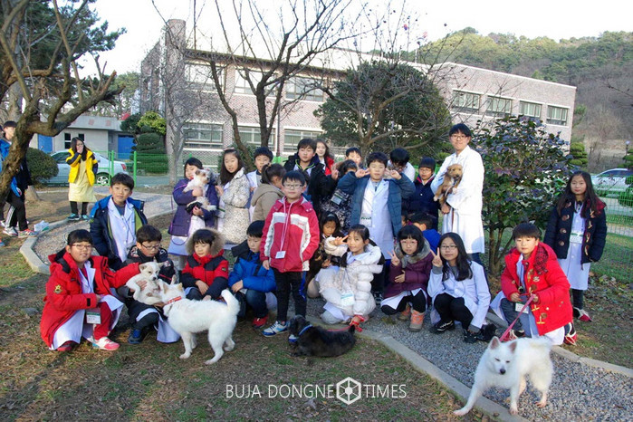 [광주=부자동네타임즈 손권일 기자]광주광역시 보건환경연구원이 지난 12일부터 3회에 걸쳐 열고 있는 '어린이 과학체험 동물교실'에 초등학생 3~6학년 학생과 학부모 100여 명이 참가해 동물 장기를 직접 만져보고, 동물보호소의 유기견과 산책도 하고 있다.