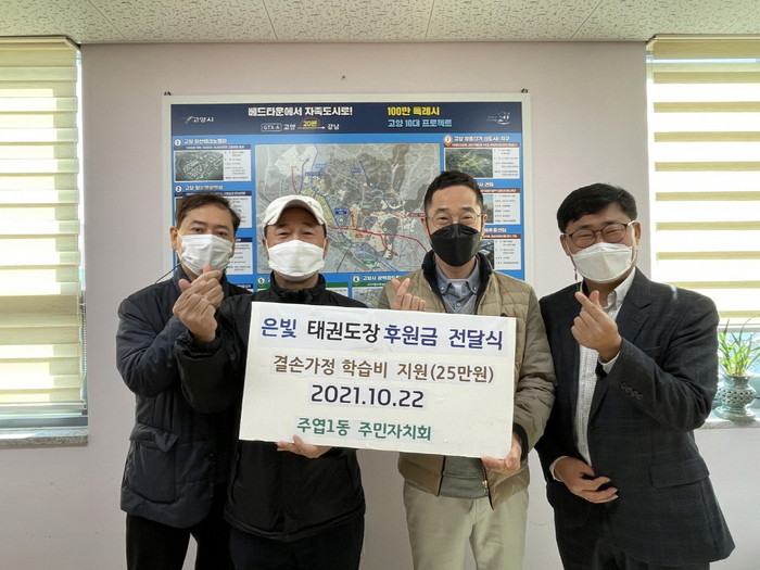 [부자동네타임즈 김인수기자] 고양시 주엽1동(동장 이홍연)은 "지난 10월 22일, KTI 경희대 은빛태권도장이 결손가정을 위한 기부금을 전달했다."고 밝혔다.
