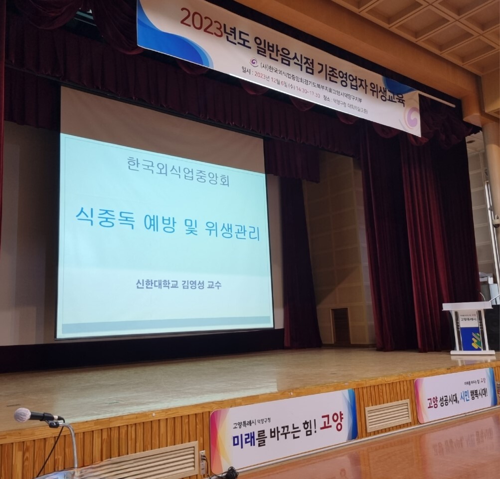 이날 교육은 (사)한국외식업중앙회 고양시덕양구지부 주관으로 실시됐다. 식품위생법과 식품안전관리 등 일반음식점을 운영하는데 필요한 법률 해설과 영업장의 위생 능력을 향상시킬 수 있는 사례 중심의 내용으로 진행해 영업주들로부터 큰 호응을 얻었다.