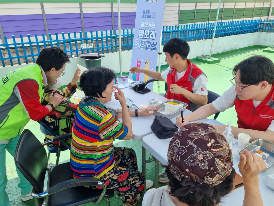 성사1동 특화사업으로 추진 중인 별모래 건강교실은 관내 경로당, 거동이 불편한 건강취약가정으로 찾아가 건강 상담, 혈압·혈당체크, 인지선별검사(치매검사) 등을 진행하여 각종 노인성 질환을 조기에 발견하고 관리할 수 있도록 지원하는 사업이다.