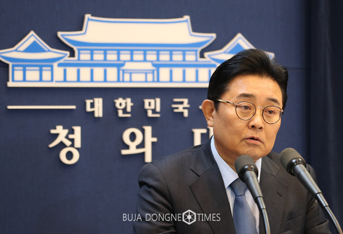 롯데홈쇼핑에서 불법 후원금을 수수했다는 의혹을 받고 있는 전병헌 청와대 정무수석이 16일 오전 춘추관에서 사의 표명을 하고 있다. 2017.11.16.
