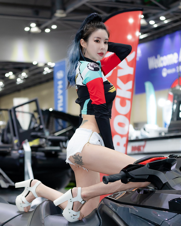 [사진설명] 캔암(Can-am)부스에서 모델 홈제이가 치명적인 섹시미를 뽑내고 있다.