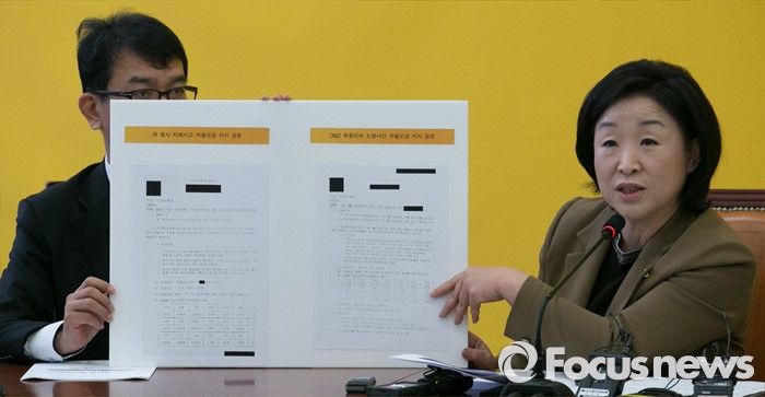 심 대표는 또 "8월 북한 목함지뢰 사건으로 두 하사가 다치는 사건이 발생했을 때도 마찬가지"라며 '불모지 작전 임무수행 간 부상 전우에 대한 자율모금 지시'와 '북, DMZ 지뢰도발 관련 성금 자율모금 지시'라는 제목의 공문 두 개를 공개했다.